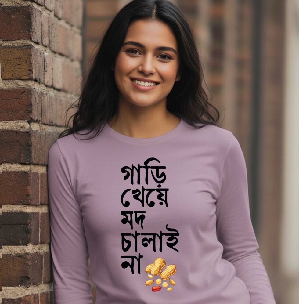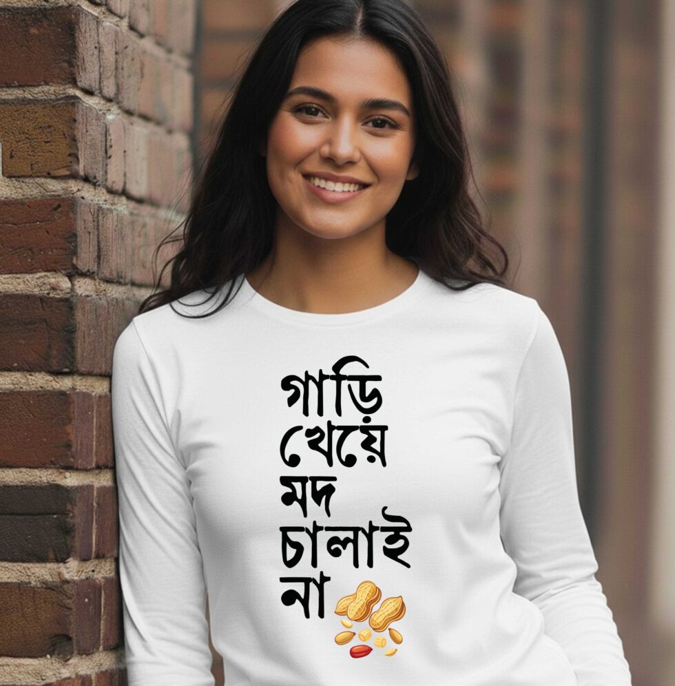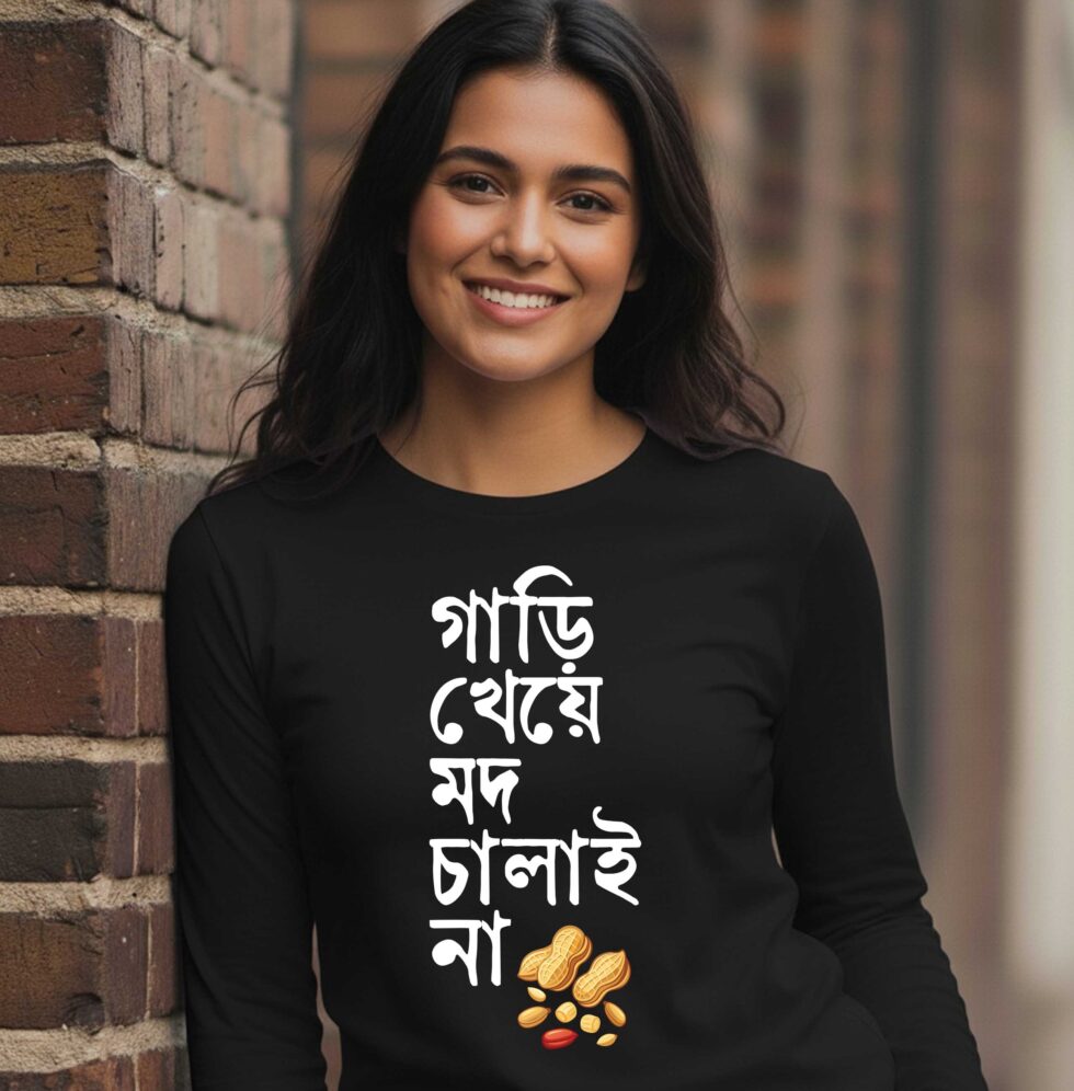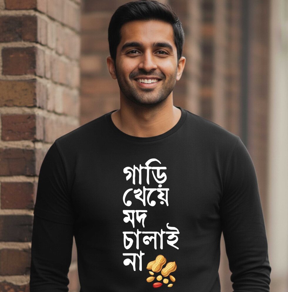 Gari Kheye Mod Chalai Na – 100% Cotton Unisex Full Sleeves T-Shirt