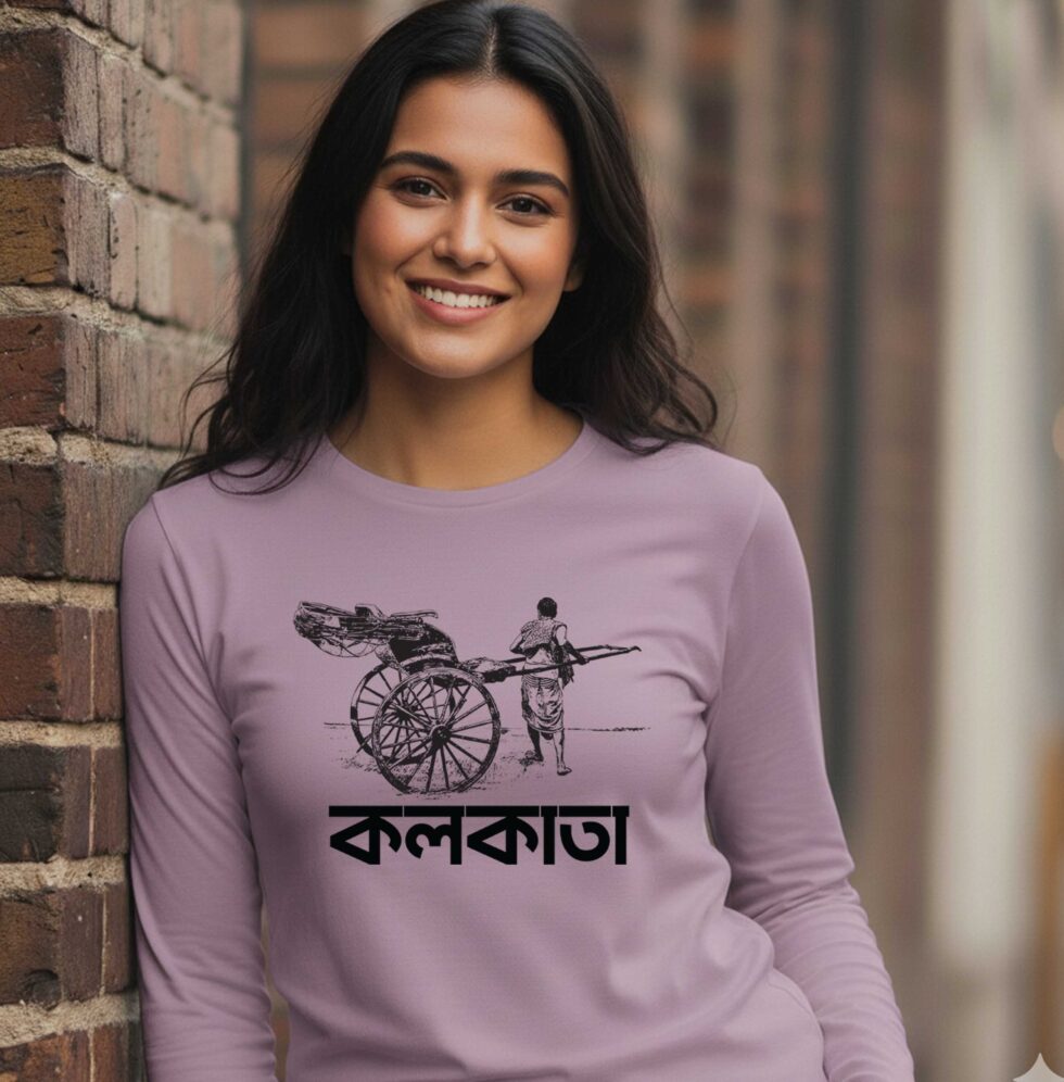 Kolkata Rickshaw – 100% Cotton Unisex Full Sleeves T-shirt